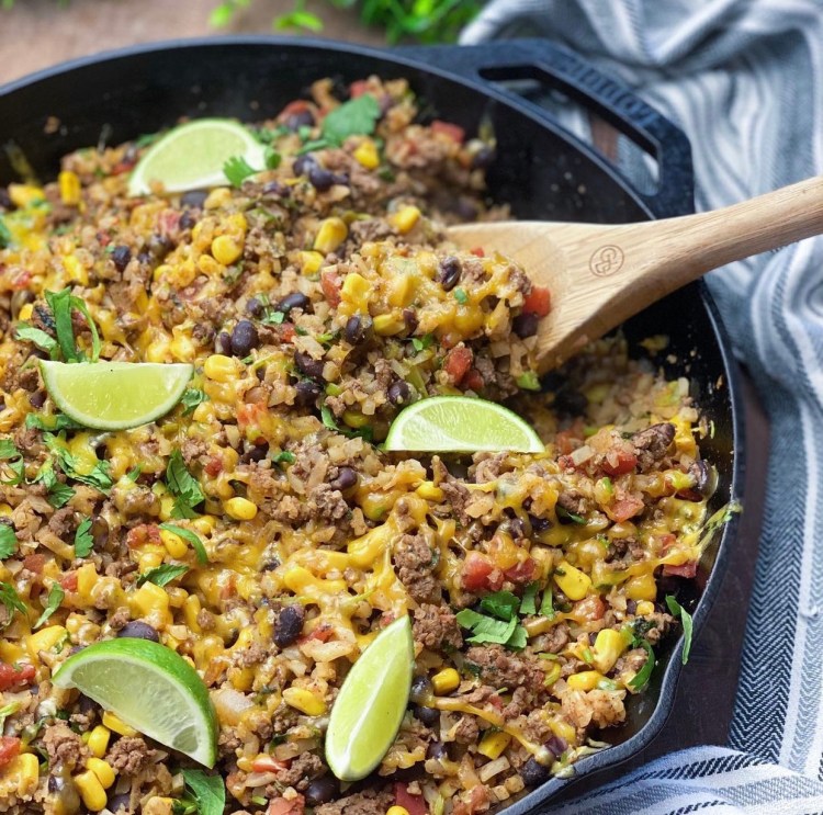 โ€ข Add the black beans, corn, cauliflower rice & tomatoes. Once incorporated mix in the cilantro, lime zest & juice