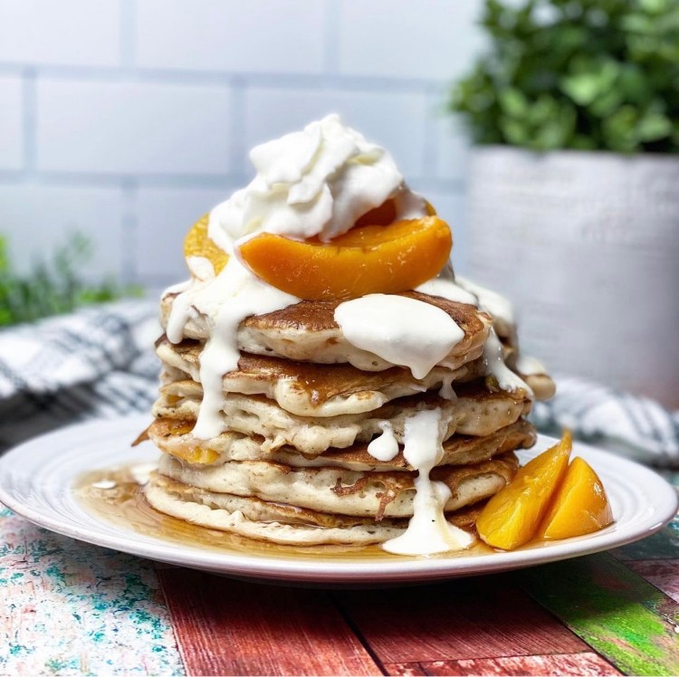 โข Top pancakes with more peaches, cream cheese mixture, syrup & whipped cream