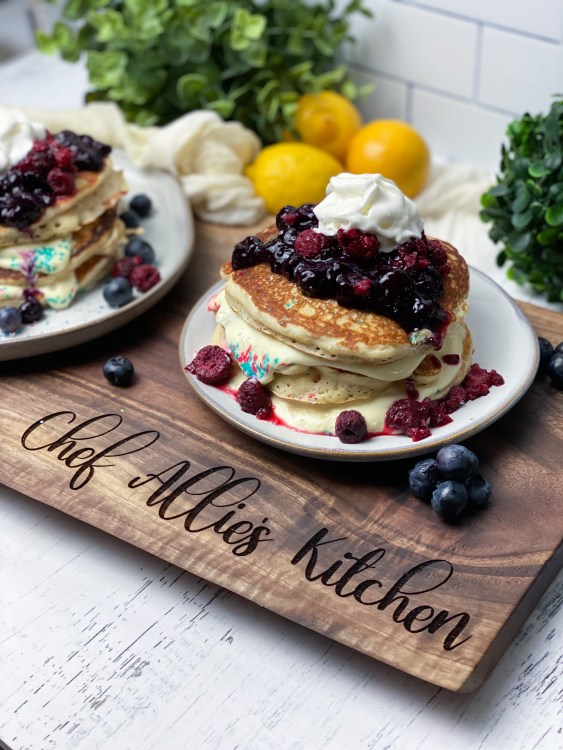 How patriotic and adorable are these pancakes? I mean besides looking and tasting amazing these pancakes would be so great to serve for Memorial Day!