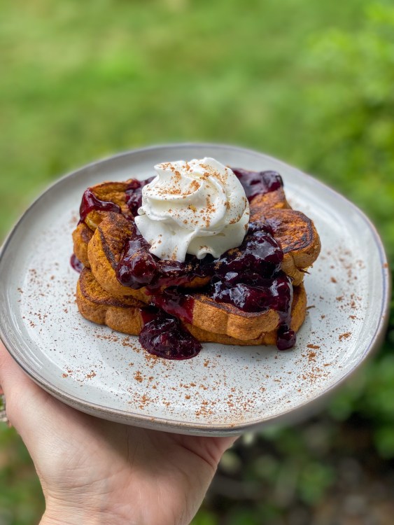 Pumpkin French Toast With Blueberry Sauce