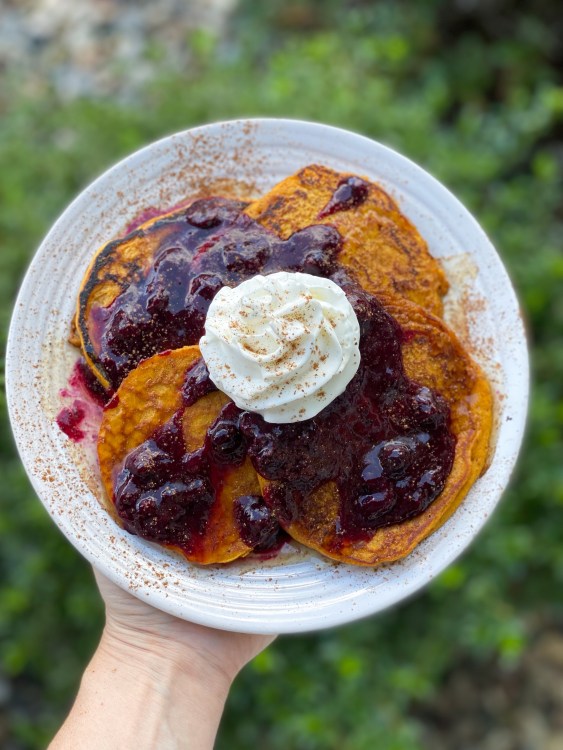 Pumpkin Spice Pancakes With My Blueberry Sauce