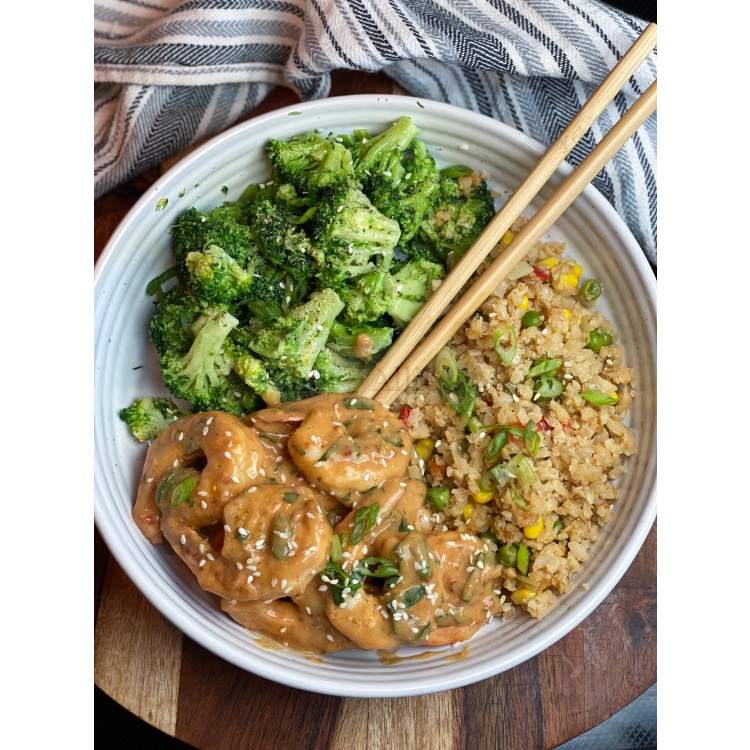 Spicy Peanut Butter Shrimp with Veggies