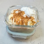 - Add the sliced bananas, peanut butter and whipped cream to garnish.