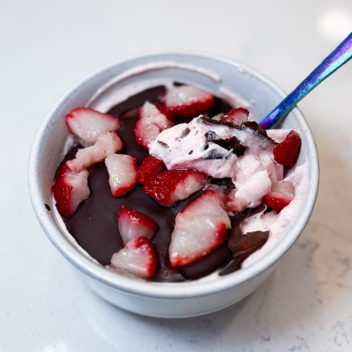 As you savor each mouthwatering bite, you’ll experience the delightful contrast of creamy yogurt, juicy strawberries, and decadent chocolate. It’s a symphony of flavors and textures that will leave you feeling indulged and satisfied.