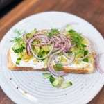 Whipped Ranch Cottage Cheese Toast with Cucumbers, Onions & Honey