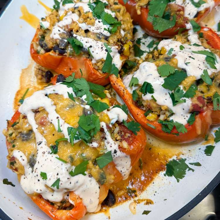 chefallieskitchen Taco Stuffed Peppers with Palmini Rice Spice up your weeknight with my Taco Stuffed Peppers! 🌮🌶️ Transform ordinary bell peppers into flavor-packed vessels filled with savory Palmini Hearts of Palm Rice, lean ground turkey, and all the taco fixings. Who says healthy can’t be delicious? Get ready to satisfy your cravings! One serving is…